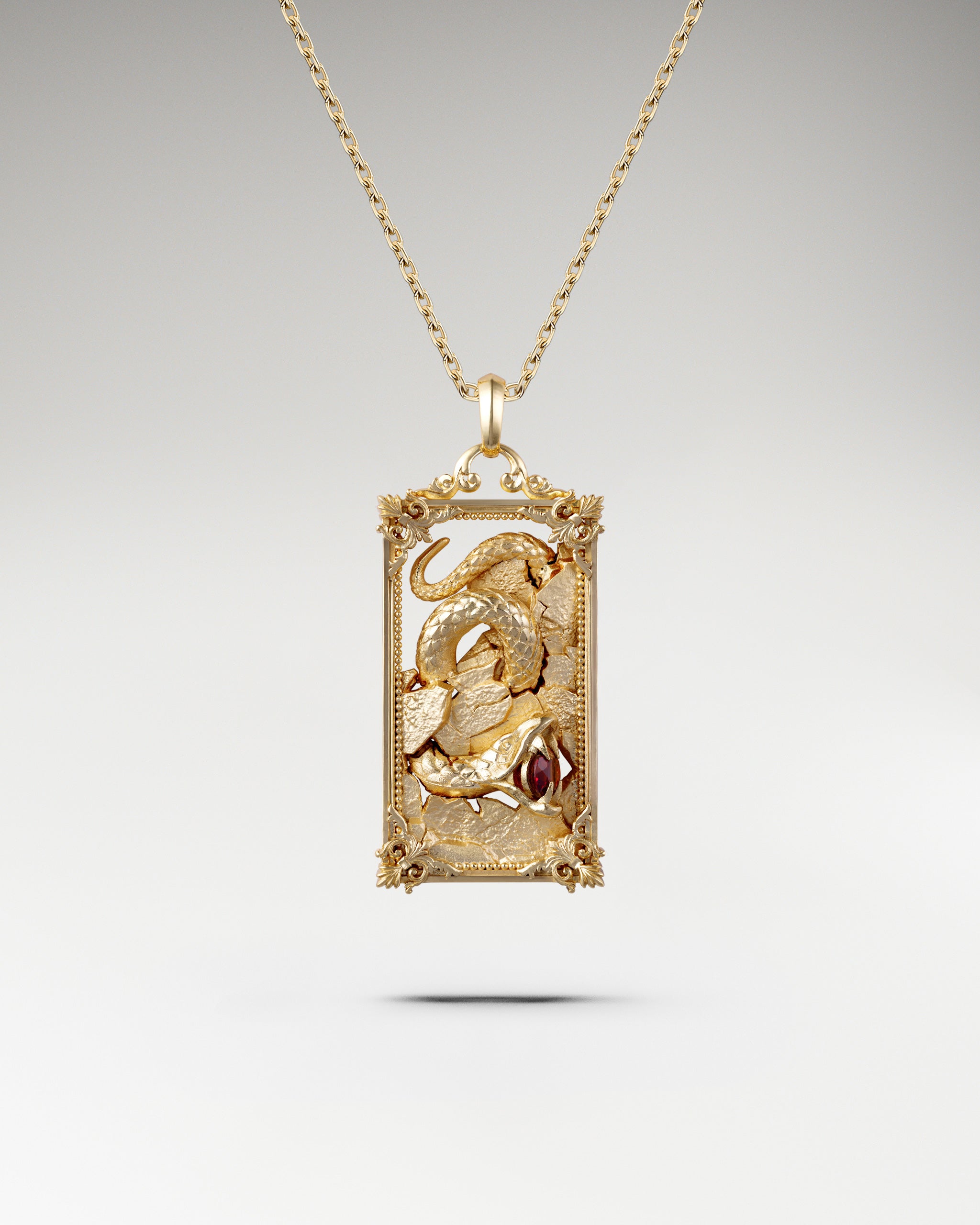 Este colgante forma parte de nuestra colección "Eden" y está elaborado en plata y granate. Su diseño neutro en cuanto al género lo convierte en un accesorio versátil, perfecto para combinar con atuendos casuales. Como pieza atrevida y elegante, es una opción ideal para el uso diario, ya que ofrece una expresión única de individualidad.