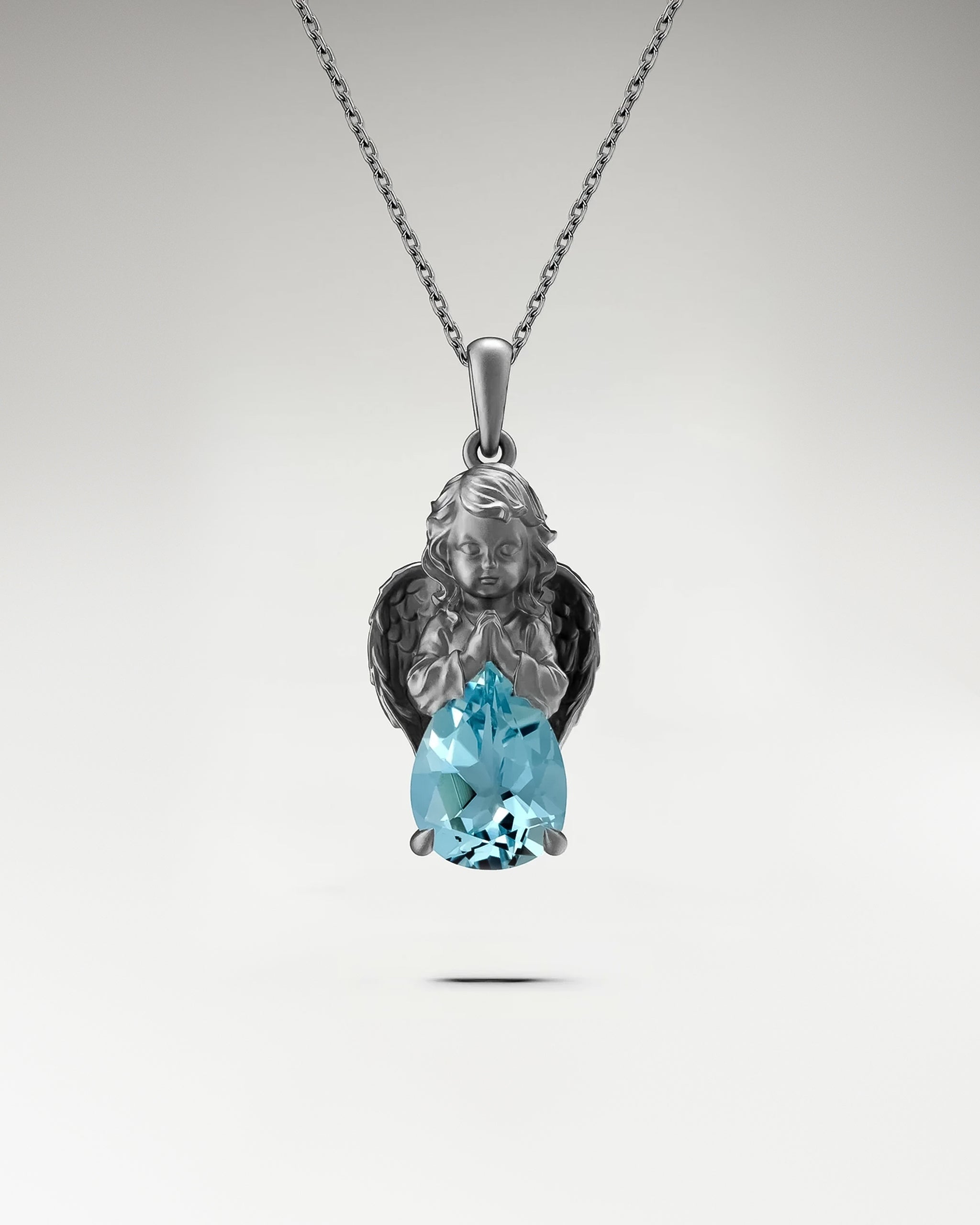 Schutzengel-Halskette aus Sterlingsilber mit blauem Topas