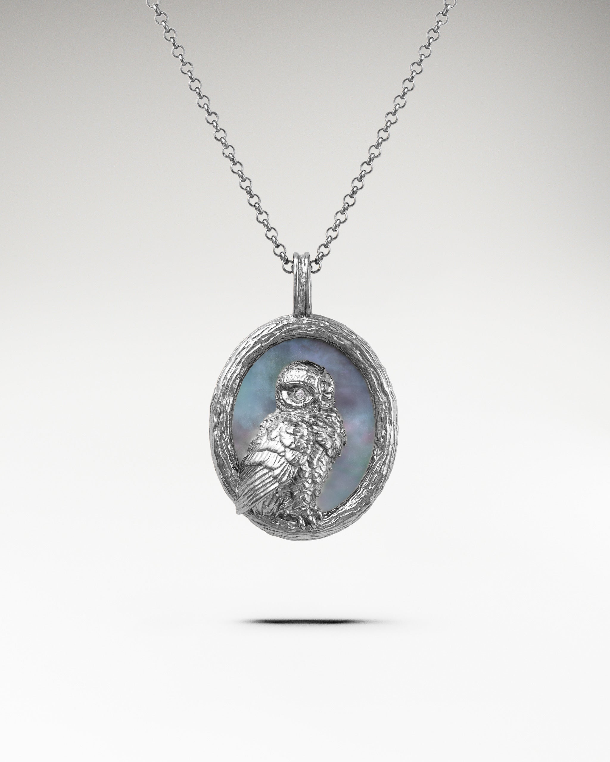 Inspirado en la belleza de la naturaleza, este colgante no es sólo una joya sino una obra de arte escultórica que refleja la tranquilidad y la sabiduría del búho en perfecta armonía con su entorno.